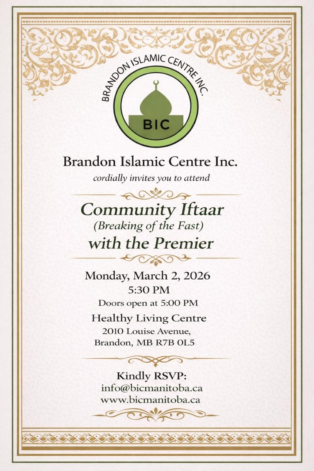 Brandon University is proud to host an event organized by the Muslim community of Brandon through the Brandon Islamic Centre.